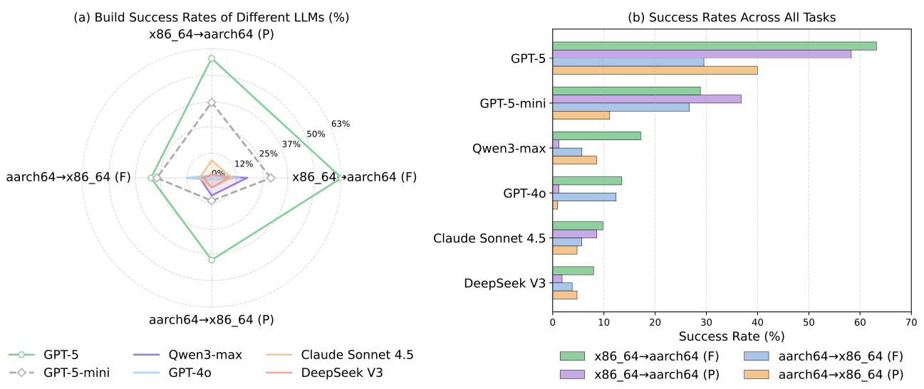 We present Build-bench, an end-to-end benchmark that systematically evaluates the capability of LLMs to repair build failures in cross-ISA settings.