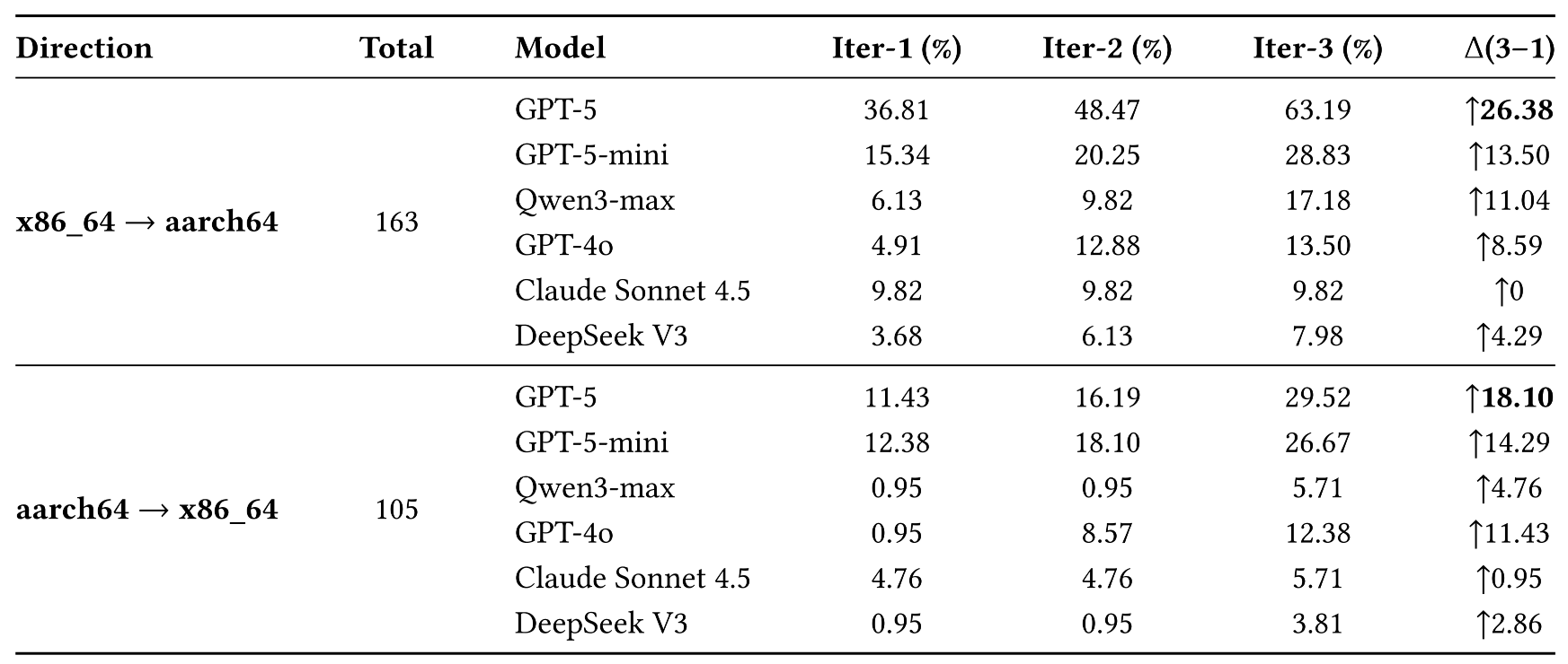 Table.2 summarizes the effect of iterative feedback on cumulative repair success across three iterations in Build-bench.